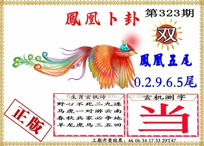| 323期 | 虎 | 红单 | 5尾 | 鸡09 |